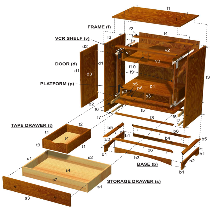 This handsome entertainment center is large enough to hold a 27" TV behind its two sliding doors. A VCR shelf is provided above the TV and tape storage drawers are provided below.Â