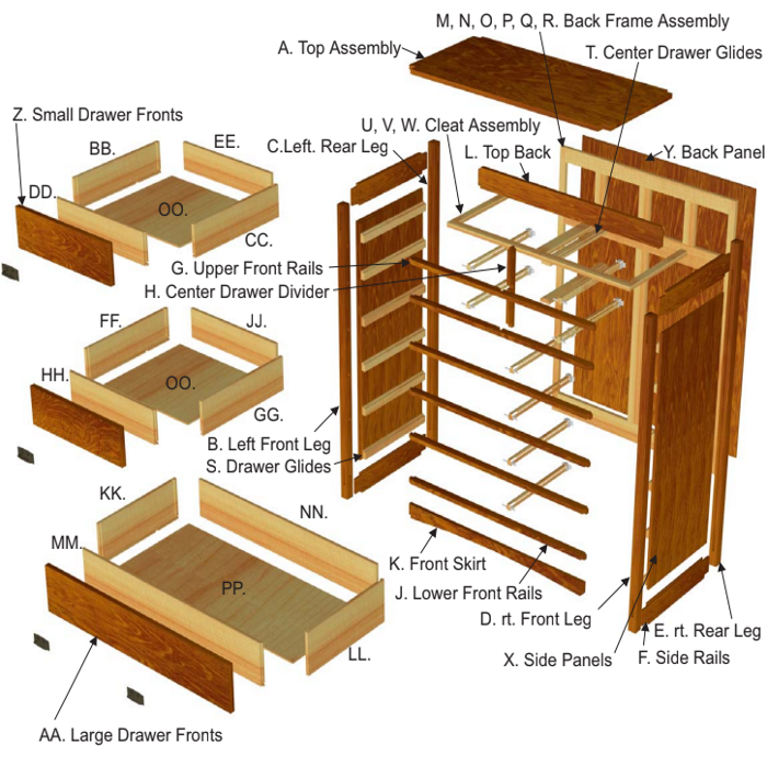 This Mission style chest features simple, clean lines with a strong and sturdy structure. The mortise & tenon joinery keeps the piece stable. A total of 8 drawers provide plenty of storage. This project makes for a great heirloom for generations to come.