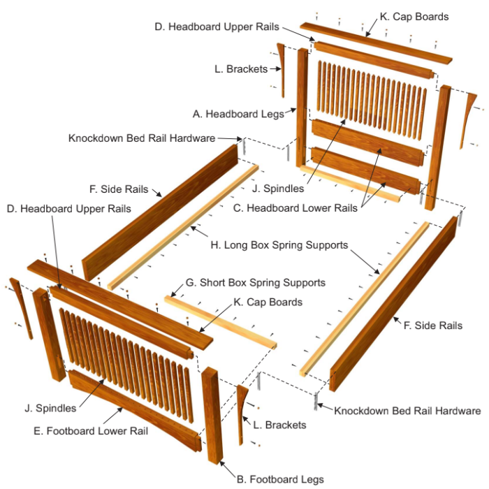 This bed project is the centerpiece of our Mission collection. The spindle bed features solid wood construction with mortise & tenon joinery and convenient knockdown hardware. The knockdown hardware makes the bed easy to move to another room without taking away from its beauty. Its classic look and corbel brackets are a favorite among our customers.