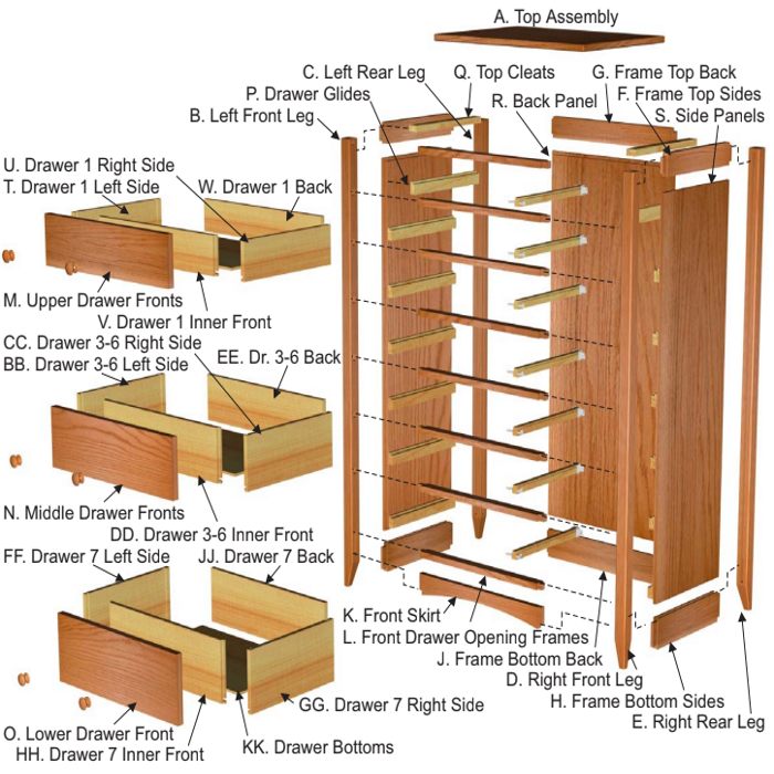 This woodworking project is designed in the Shaker style, made to match the rest of our Shaker designs. Seven drawers provide plenty of storage. The beautiful design is also made sturdy with the same mortise & tenon joinery as the rest of our collections.